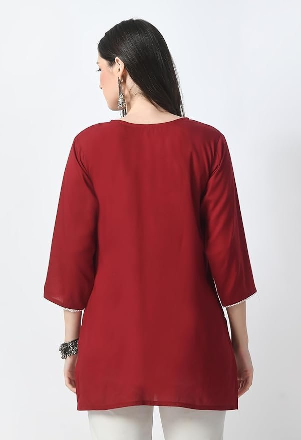 Short Kurti for Women | Indian Women's Tunics Tops | Rayon Top with 3/4 Designer Sleeves | Kurta Shirt Top for Ladies
