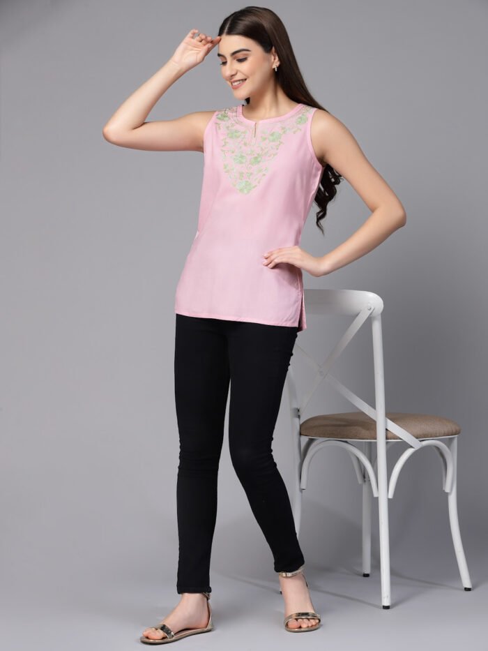 Nadia Kashmiri Light Pink Sleeveless Kurti