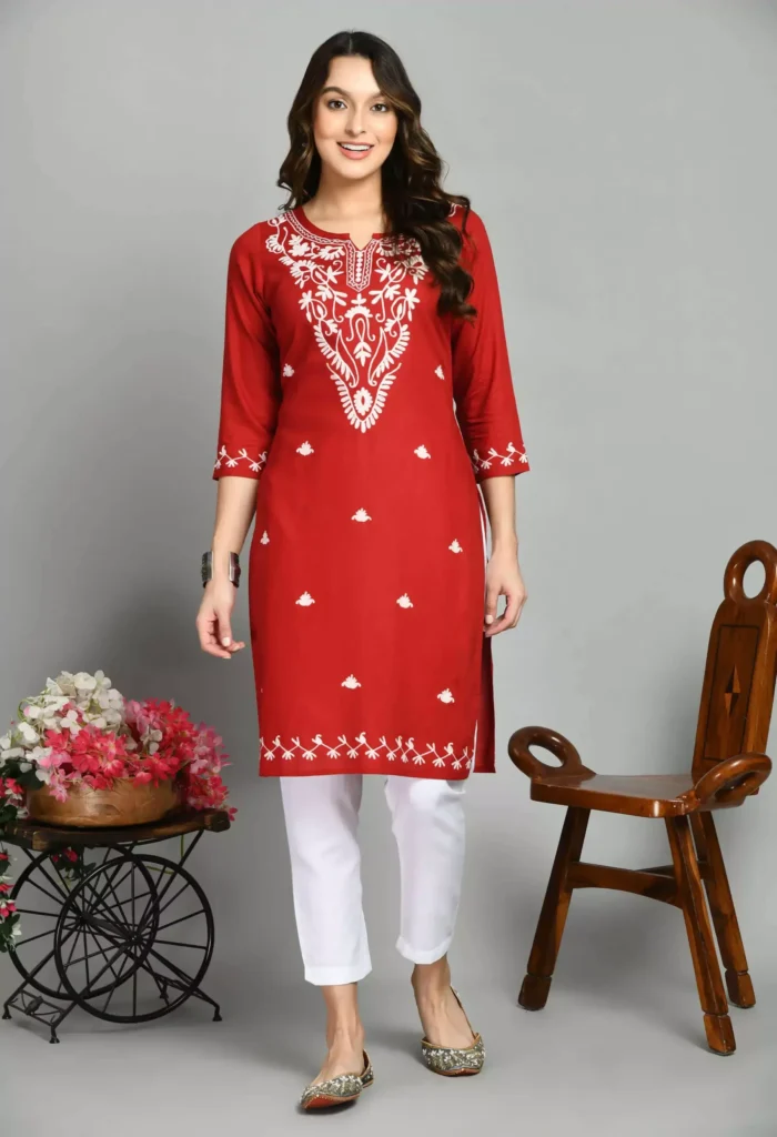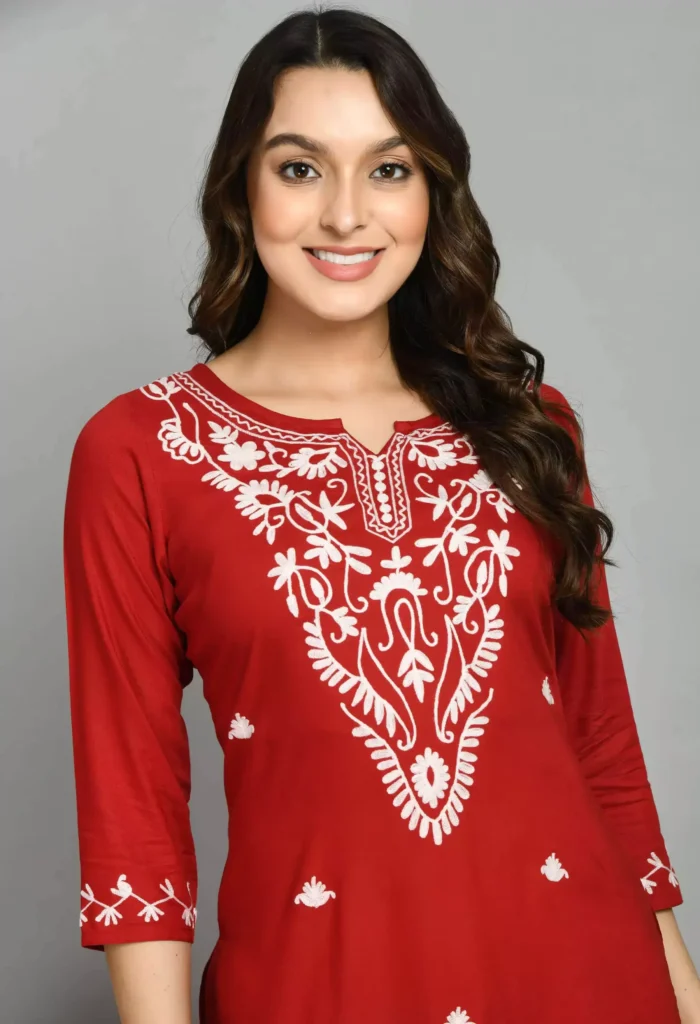 Look ethereal in this Aari work Kurti, crafted with beautiful Kashmiri Aari work.