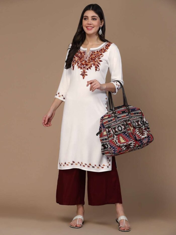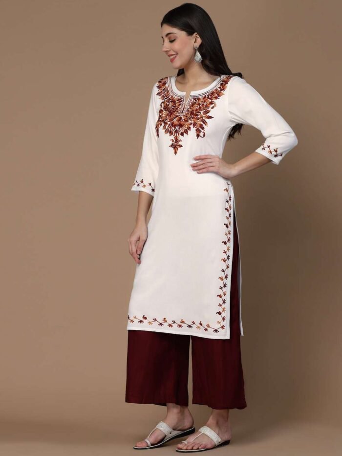 White Kashmiri Embroidered Kurti